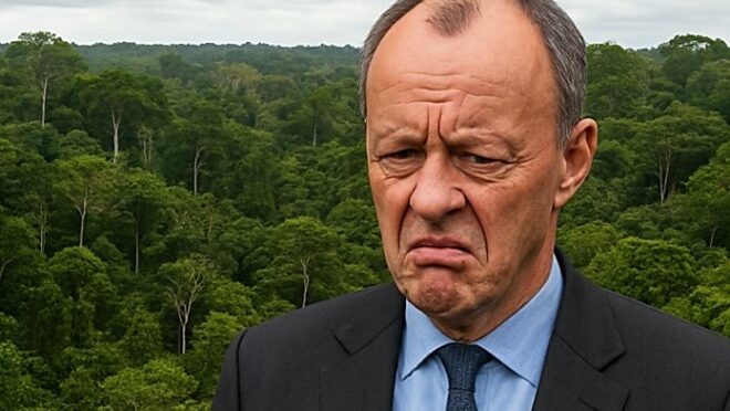 Depois de ser recebido com tapete verde estendido, açaí orgânico na bandeja e discurso pronto sobre “parceria estratégica pelo clima”, mal voltou à Alemanha e Merz cuspiu nos brasileiros sem qualquer pudor, com um comentário de turista enjoado com o calor e a umidade da floresta que ele finge defender. Como se dissesse: “Graças a Deus saímos daquele lugar! Que nojo de país quente, úmido e cheio de pobre! Que lugar desagradável!”.