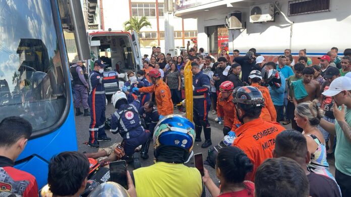 Entregador de delivery tem perna esmagada por ônibus em Manaus