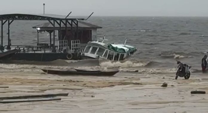 Alvarães (AM) — Um forte temporal causou o naufrágio de uma lancha escolar na manhã desta quarta-feira (21), no município de Alvarães, interior do Amazonas. Embora o susto tenha sido grande, a embarcação estava ancorada e vazia no momento em que afundou. Felizmente, ninguém ficou ferido durante o incidente.