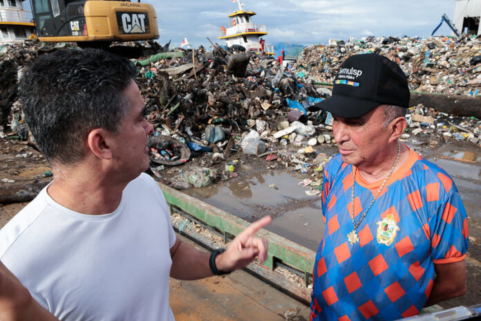 Manaus (AM) – O prefeito de Manaus, David Almeida, acompanhou, na manhã deste domingo (22/2), a operação de transbordo de resíduos sólidos realizada pela Secretaria Municipal de Limpeza Urbana (Semulsp) no porto Trairi, zona Oeste da capital. A ação retirou cerca de 350 toneladas de lixo acumulado na orla e nos igarapés que deságuam no rio Negro.