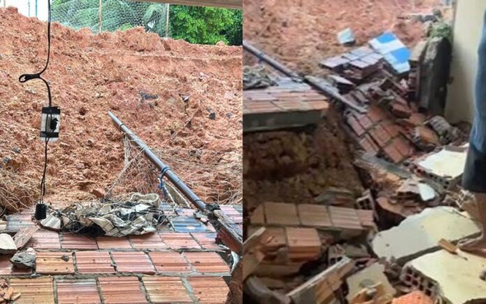 Na rua Galileia, no bairro Novo Israel, zona Norte, um barranco cedeu com a força da chuva, destruiu parte de um muro e invadiu uma casa. Imagens feitas por moradores mostram um dos cômodos tomado por terra e tijolos. Apesar do susto, não há registro de feridos.