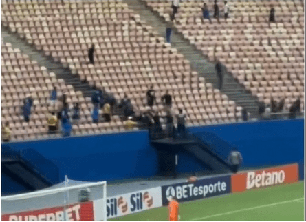 Os torcedores do Paysandu invadiram a arquibancada do Nacional e iniciaram uma briga generalizada na noite desta quinta-feira (09/04), durante partida na Arena da Amazônia, em Manaus. A confusão começou quando um grupo rompeu a área de isolamento e avançou contra os rivais, provocando correria e tensão nas arquibancadas.