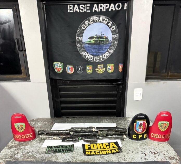 Polícia apreende 13 tabletes de pasta-base de cocaína durante fiscalização da Base Arpão 2 perto de Coari.