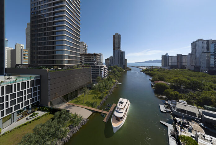 Primeiro branded residence náutico da América Latina e segundo do mundo, o empreendimento leva conceito inédito ao litoral catarinense.Primeiro branded residence náutico da América Latina e segundo do mundo, o empreendimento leva conceito inédito ao litoral catarinense. (Foto: Projeção/Gessele Empreendimentos)