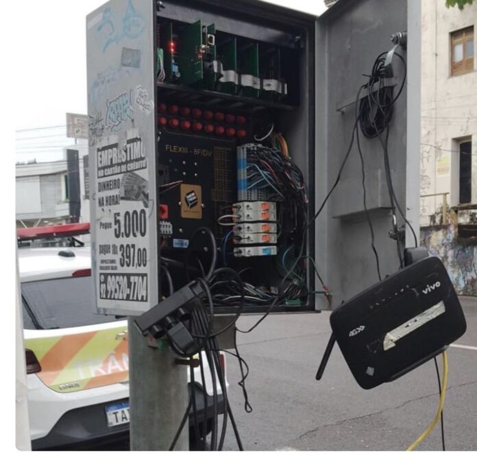 Um vândalo destruiu a caixa controladora do semáforo no cruzamento da avenida Getúlio Vargas com a rua Leonardo Malcher, no Centro, zona Sul de Manaus. A ação criminosa colocou em risco motoristas e pedestres.